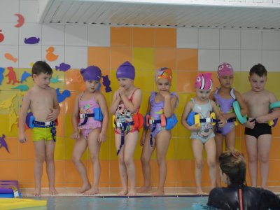 Děti ze třídy Žabiček se s radostí ponořily do plaveckého kurzu. Pod vedením usměvavé paní instruktorky si postupně osvojují nejen bezpečný pohyb ve vodě a jejím okolí, ale také správné dýchání a první plavecké techniky. V bazénu na ně čekají barevné pěnové žížaly, veselé rybičky, míčky a spousta dalších pomůcek, které proměňují každou lekci v zábavné dobrodružství. Žabičky si hodiny ve vodě opravdu užívají a už se nemohou dočkat, co je čeká příště!
