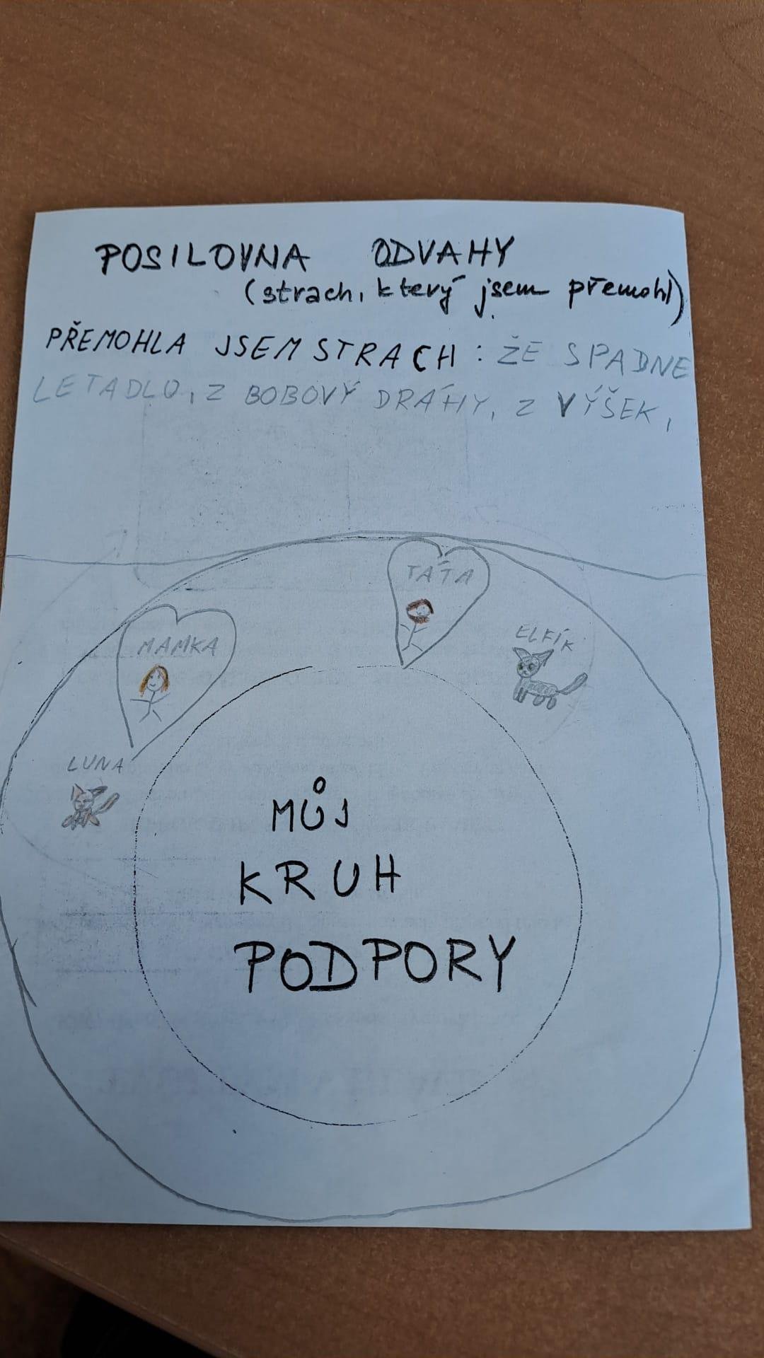 Společně jsme tvořili kruh důvěry, ve kterém mohli žáci otevřeně sdílet své pocity. Pomocí aktivity pojmenování strachu jsme si uvědomili, že i ten největší strach ztrácí sílu, když se o něm mluví. V rámci introspektivní chvíle napsali žáci dopis svému budoucímu já, ve kterém popsali, čeho se bojí dnes – a co by si přáli překonat.